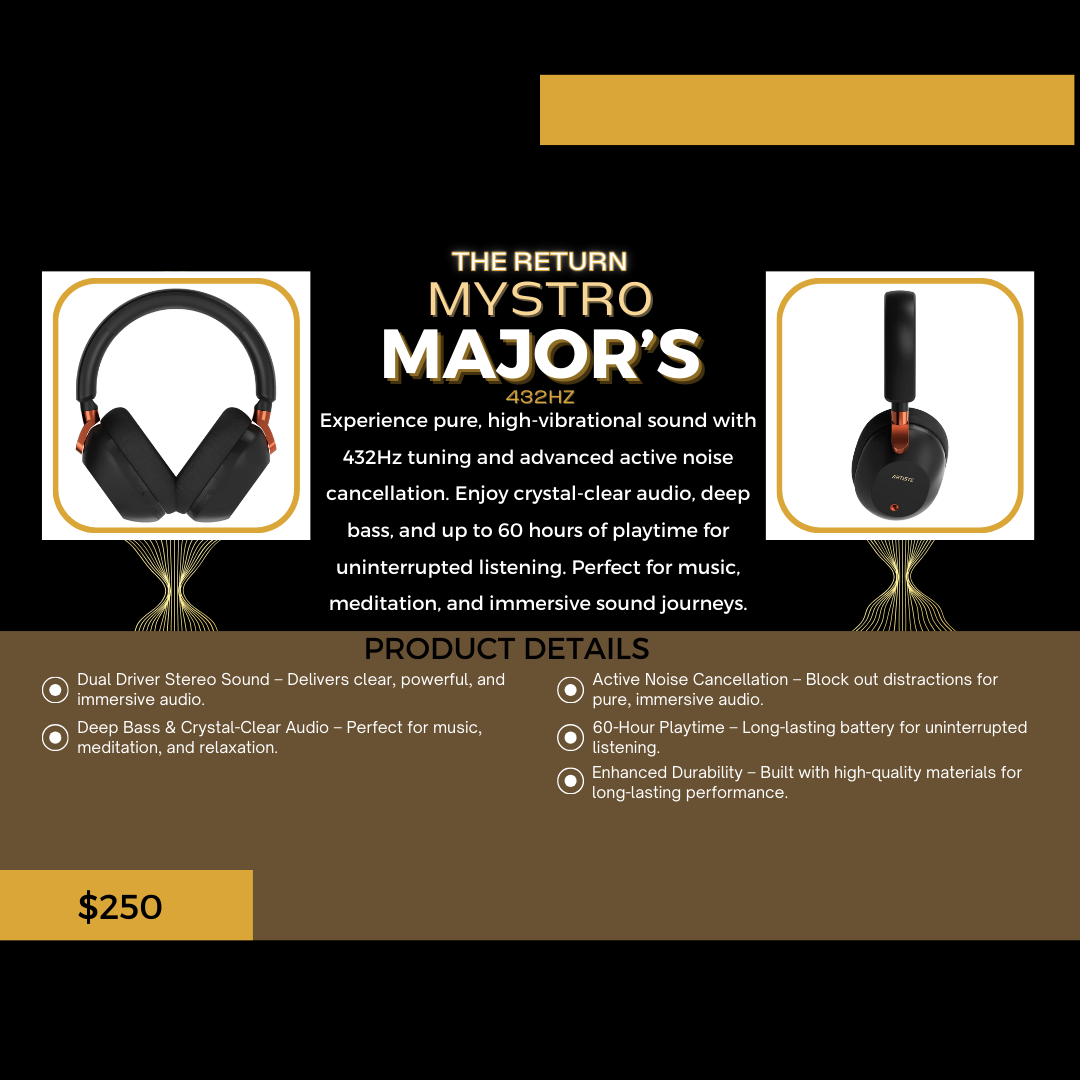 Introducing the Mystro 432 Active Noise Cancelling (ANC) Headphones – the latest innovation in Mystech’s Resonance Technology! Designed to deliver an immersive and harmonious listening experience, these headphones are imprinted at 432Hz, aligning your music with the natural resonance of the universe. Enjoy deeper, more authentic sound that enhances your emotional connection to every note.