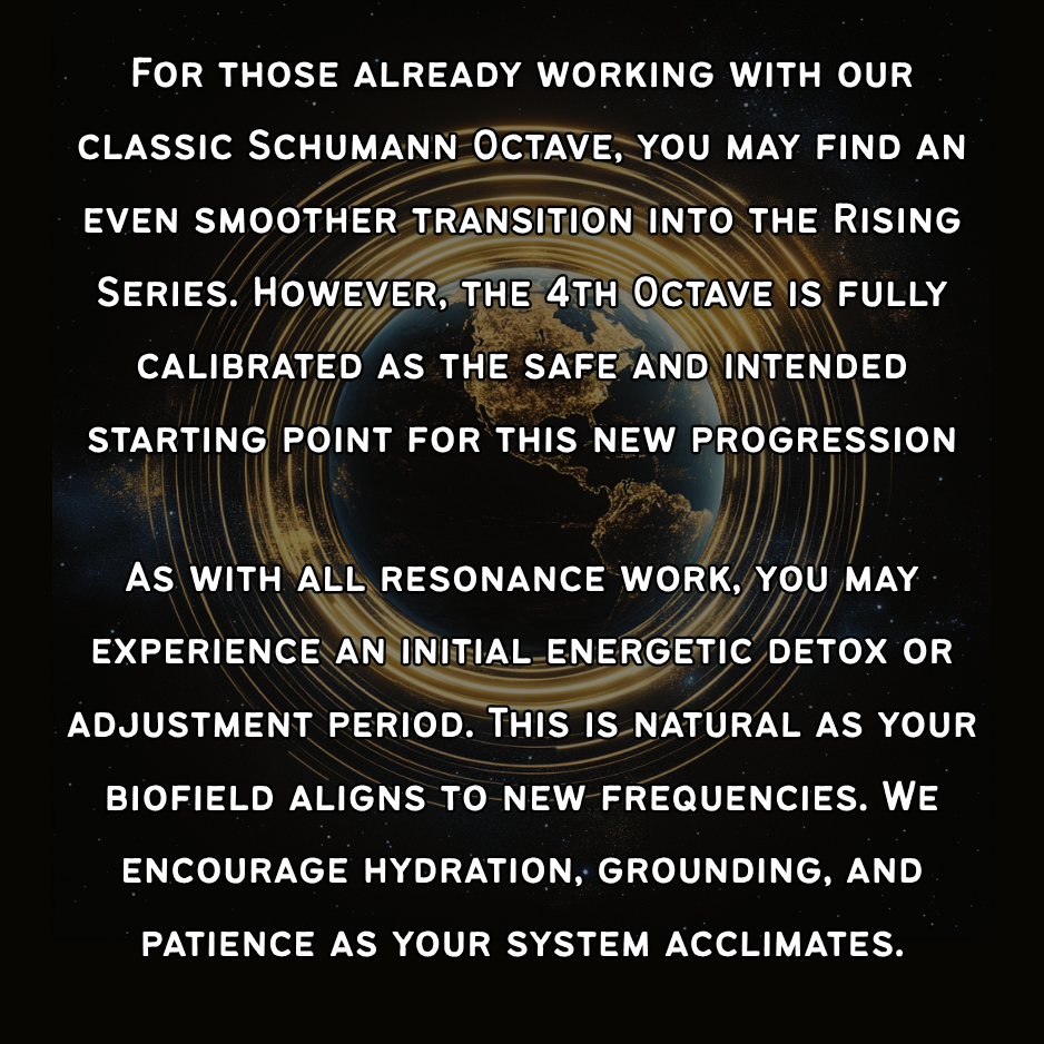 Each piece carries the same dual-frequency imprinting (Octave 4 + 7.83 Hz core grounding).