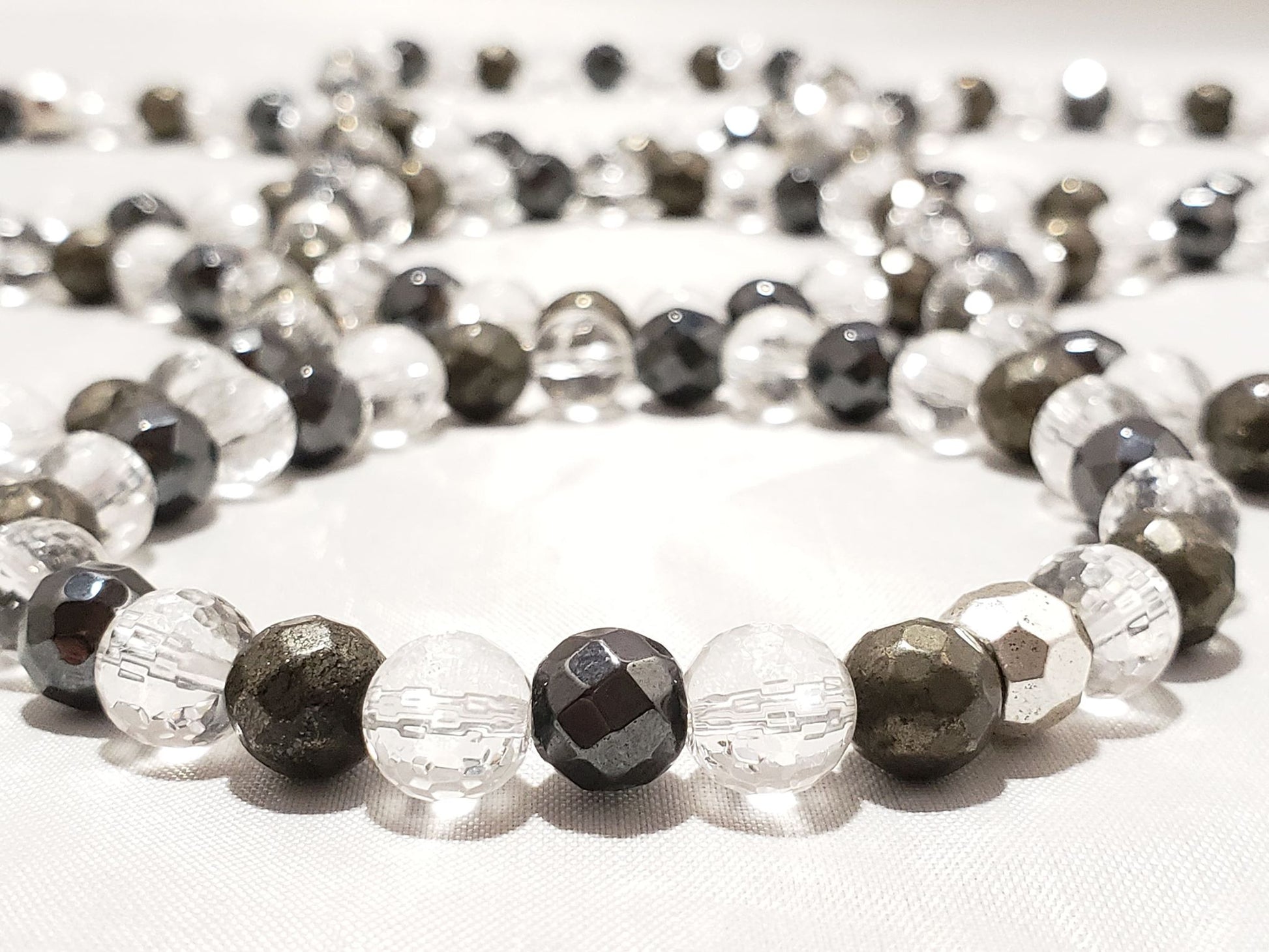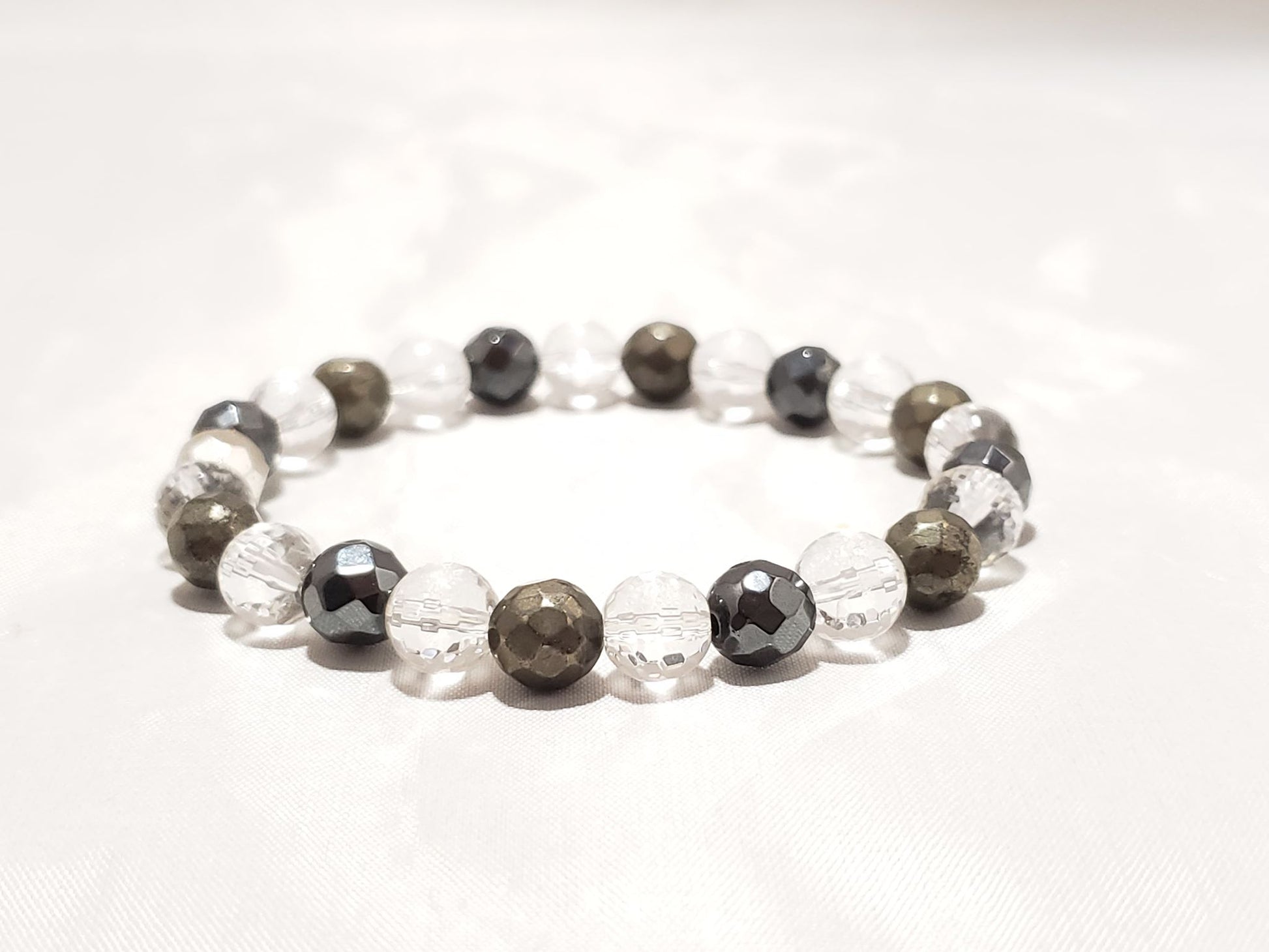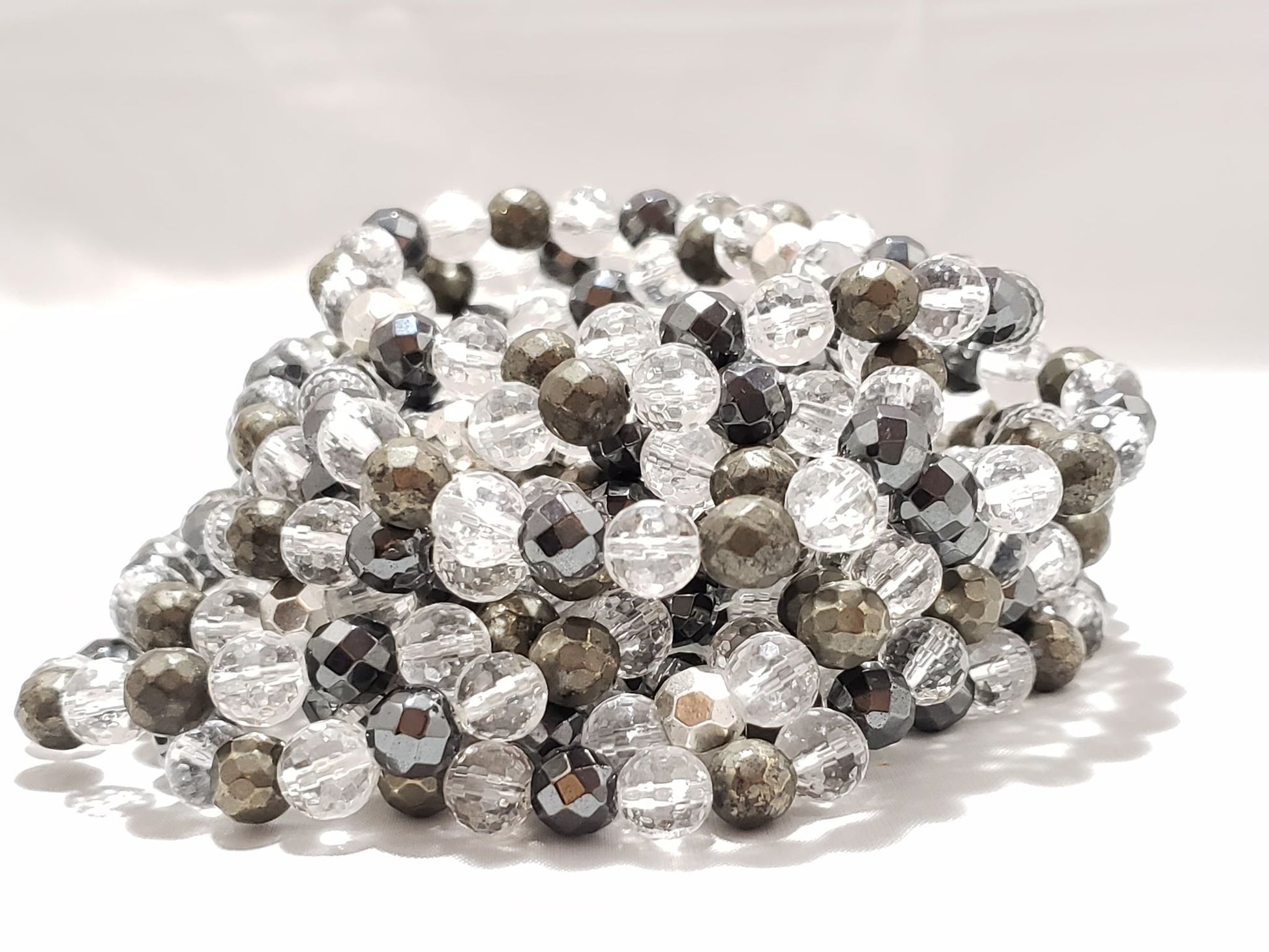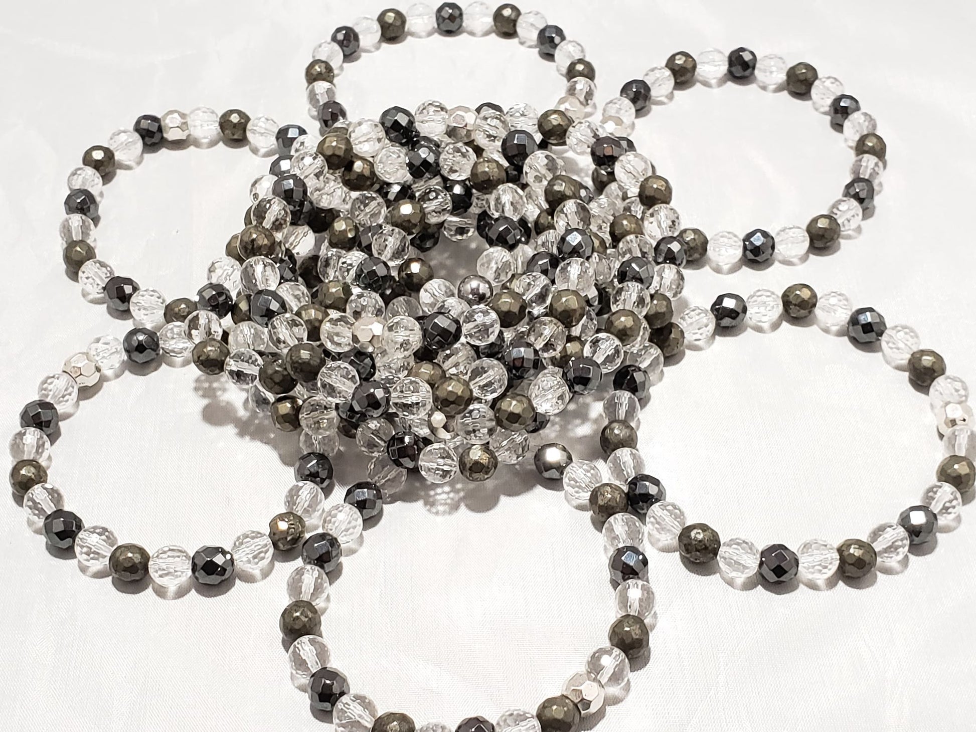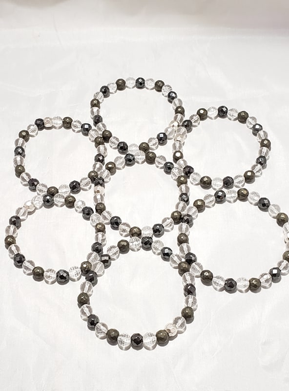 These are the Frequencies in combination we have chosen as our best Pre-Defense to our current understanding of 5G. Using our proprietary process of Imprinting, we have created a device in the form of a Bracelet to help combat the understood dangers of 5G. We have thoughtfully crafted a Bracelet using 3 different beads; Quartz, Hematite, and Pyrite, each Imprinted to a different Frequency to combat the different effects of 5G.