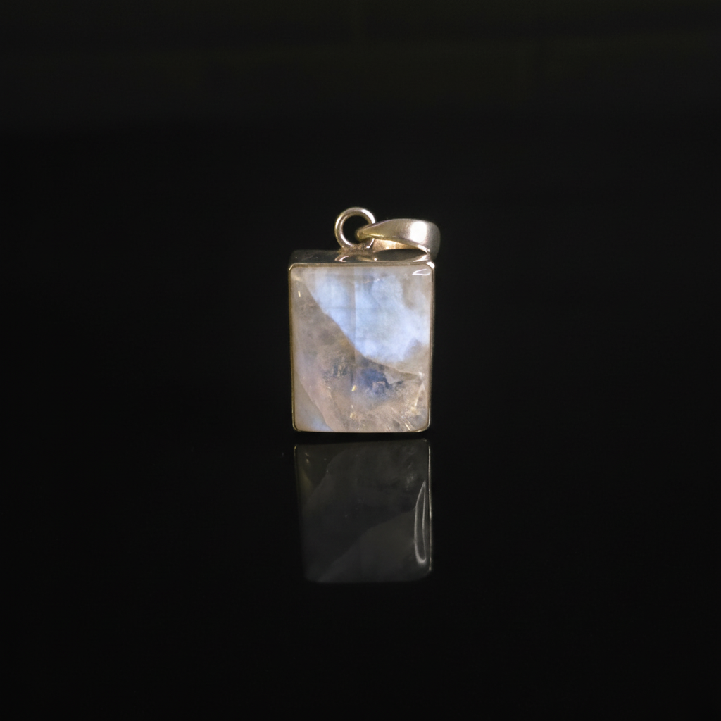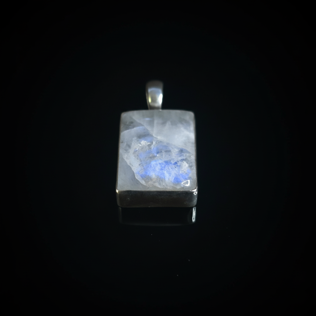 Moonstone carrying a natural internal sheen that forms a subtle eye when the light meets it correctly.