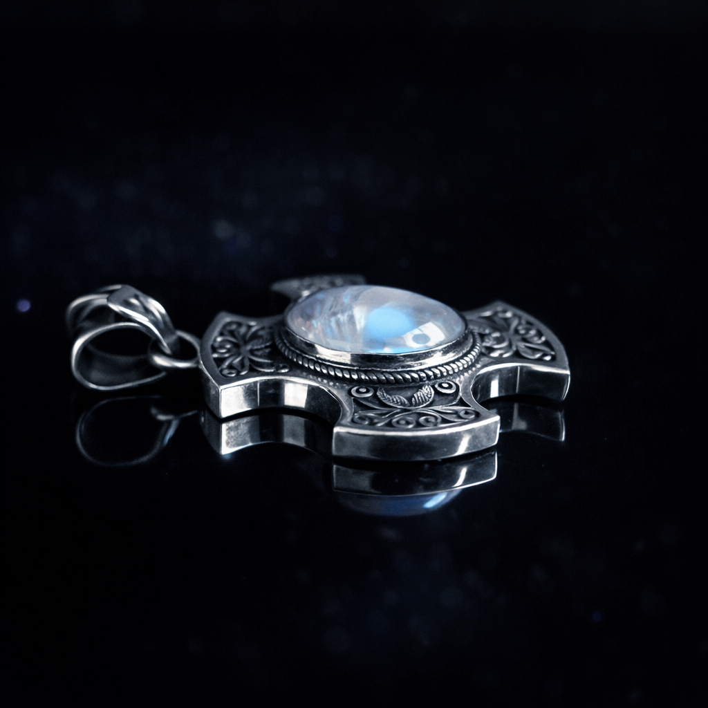 A luminous Moonstone alive with shifting blue and violet light.